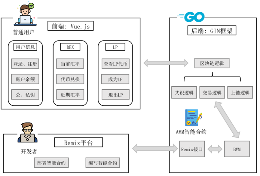 该项目基于黄华威老师研究组自研区块链 BrokerChain(高性能分片区块链),通过构建精心设计的前端实现了简洁直观的用户操作界面。开发小组注重确保用户操作的便利性与良好用户体验,为此,他们重点开发了“通证对(coin pair)”转换操作的专属功能,并且支持用户实时查看兑换利率与交易记录。开发小组在实现后端功能时,向BrokerChain分片区块链部署了符合ERC-20标准的智能合约,同时设计了多个通证对的兑换比率动态计算机制。