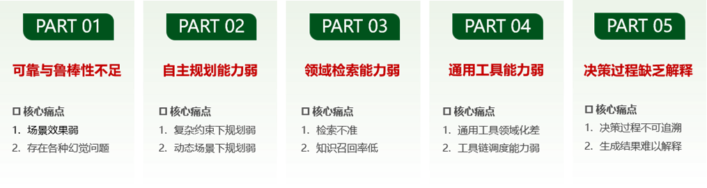 智能体从“技术原型”到“规模化落地”的过程中,企业关注的焦点不再是模型的表现能力,而是其在真实业务中的稳定性、可靠性和可追溯性。这一需求转向了“可信工程”,行业智能体的可信问题核心痛点如下图所示。