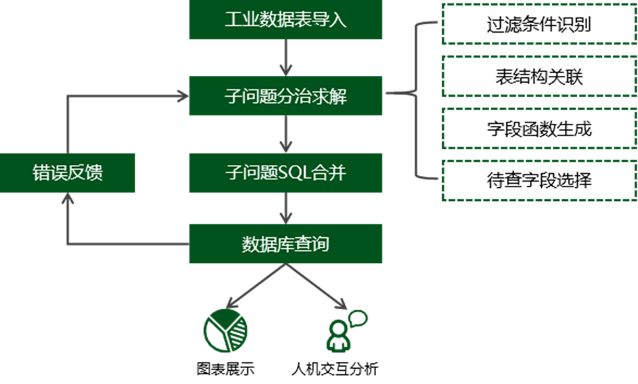 在智能制造的数据分析场景中,传统的手写SQL模式限制了决策效率。为解决这一问题,本项目开发工业领域Text2SQL工具,将自然语言查询自动转化为SQL语句并进行迭代修正。应用后,单表查询准确率达92%,多表查询准确率85%,自动修正率超过88%,整体查询准确率提升至90%,将数据查询转化为一线业务人员可用的自然语言能力,支持实时分析与决策。