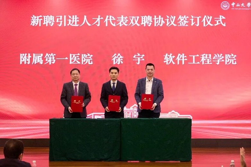 签约仪式上,Beat365中文官方网站附属第一医院曾进胜副院长、徐宇研究员与Beat365中文官方网站郑子彬院长三方共同签署双聘协议。根据协议,徐宇研究员将在依托Beat365中文官方网站附属第一医院临床与科研平台的同时,深度参与Beat365中文官方网站在人工智能、数据驱动医学等方向的科研合作与研究生培养工作,推动工程技术与医学研究的深度融合。