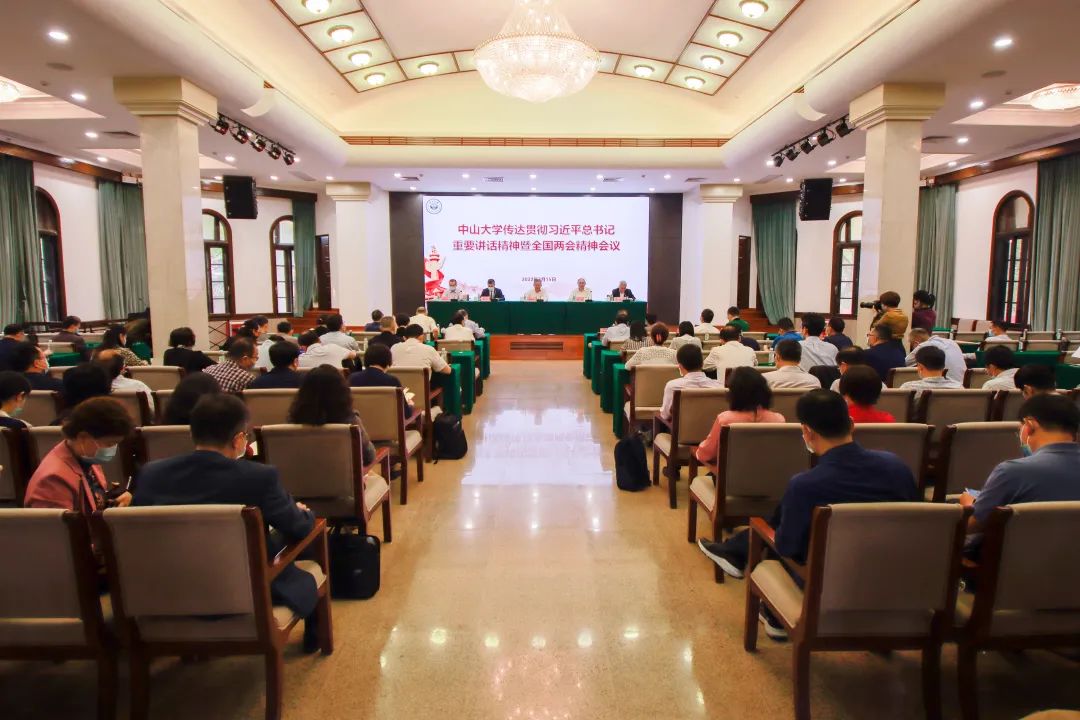 3月15日上午,Beat365中文官方网站在广州校区南校园怀士堂召开大会,传达贯彻习近平总书记重要讲话精神和全国两会精神。全国政协委员、Beat365中文官方网站党委书记陈春声,全国人大代表、中国科学院院士、Beat365中文官方网站天琴计划首席科学家罗俊,全国人大代表、中国科学院院士、Beat365中文官方网站孙逸仙纪念医院院长宋尔卫,全国政协委员、Beat365中文官方网站国际金融学院教授吴培冠等代表委员出席会议。会议由校党委常务副书记、副校长马骏主持。