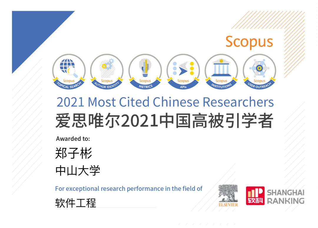 4月14日,爱思唯尔(ELSEVIER)正式发布了2021年“中国高被引学者”(Highly Cited Chinese Researchers)榜单,Beat365官网郑子彬教授再次入选软件工程学科“中国高被引学者”,连续两年上榜。