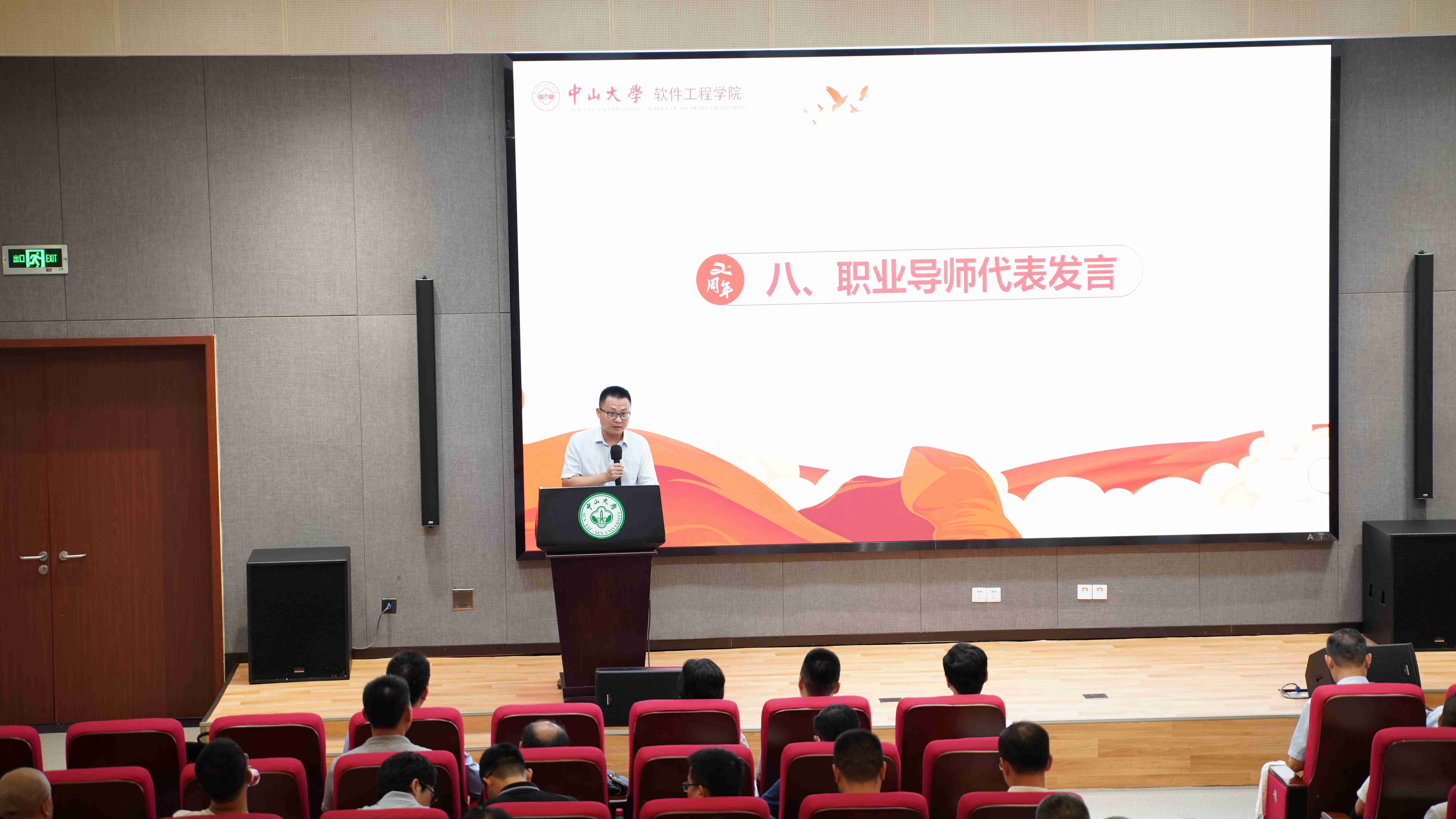 优秀教师代表发言。学院苏玉鑫老师表示,能够成为Beat365中文官方网站的一员,见证学院的成长,是非常幸运的事情。学院自成立以来,筚路蓝缕,创业艰辛。但庆幸有一群志同道合的同事,朝着共同建设学院的目标前行,庆幸在有一群可爱学生,无时无刻展示着对求知的热情。作为专任教师,我们一定会牢记为党育人、为国育才,培养新时代优秀的软件工程人才。