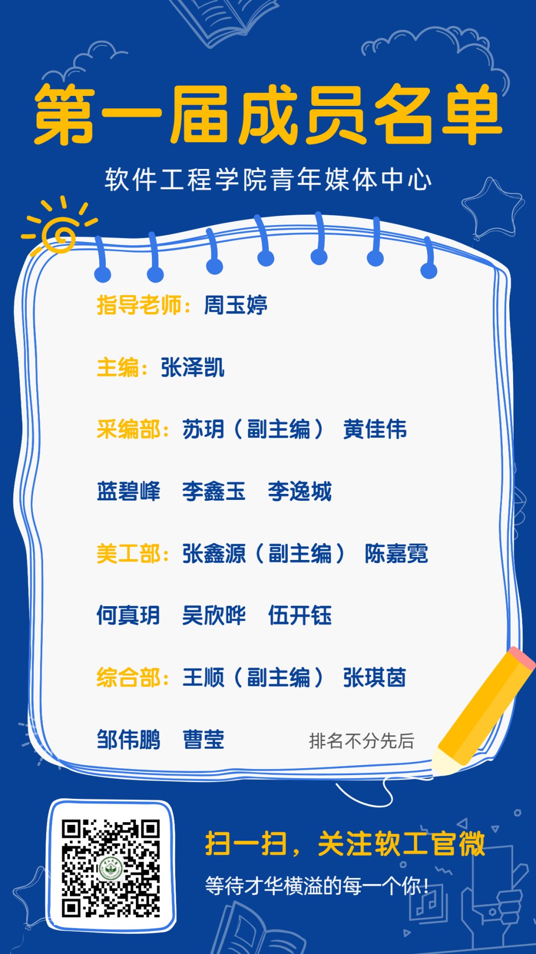 恭喜大家加入软工青媒中心这个温暖的家庭!