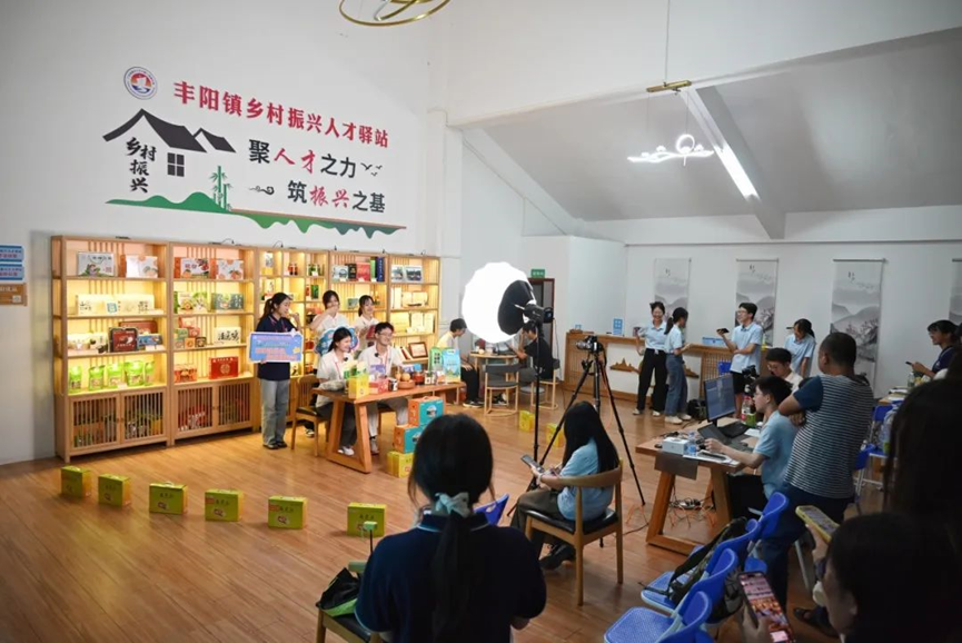 电商组的同学们早已做好充分准备,流畅地展示了各类产品:从晶莹剔透的水晶梨到清香四溢的南岭野生茶,再到满载回忆的丰阳农家水煮花生、富有嚼劲的手工红薯干、色彩斑斓的柯沐湾果蔬面,以及健康美味的丝苗香米和新鲜马蹄套装,每一款产品的亮点都被精心呈现。