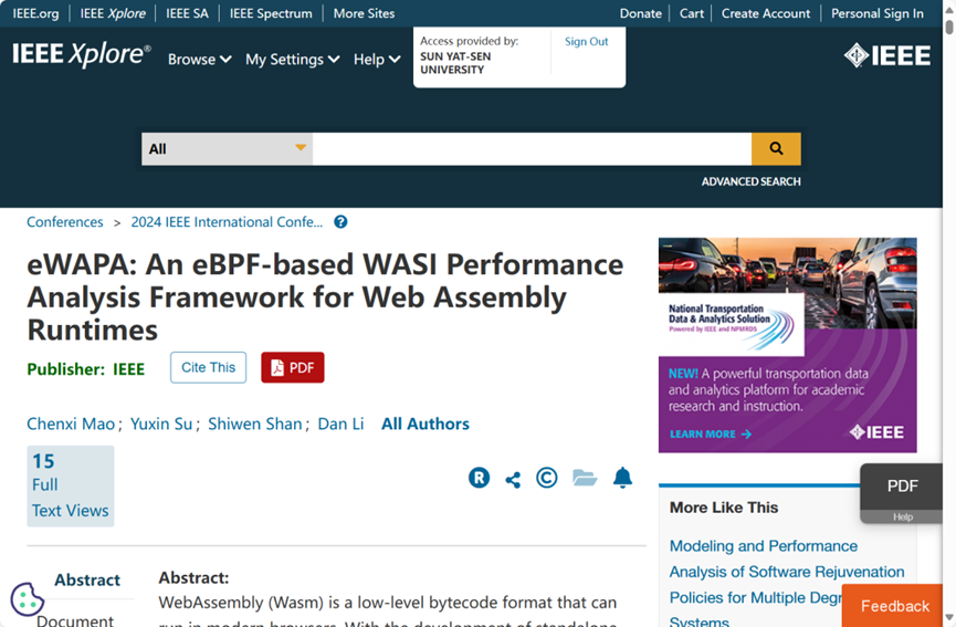 ★Chenxi Mao, Yuxin Su, Shiwen Shan, Dan Li. eWAPA: An eBPF-based WASI Performance Analysis Framework for WebAssembly Runtimes. IEEE International Conference on Software Services Engineering (SSE), 2024