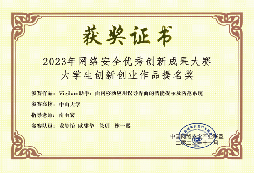 ● 2023 中国网络安全产业联盟 优秀创新成果大赛 总决赛提名奖 (我校首次)