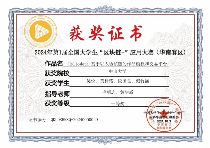 段国良:非常兴奋!在指导老师的悉心指导下,我们团队在区块链+”应用大赛中荣获国赛一等奖。感谢团队的努力与付出,期待后续有更好的完善!