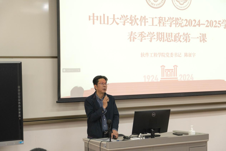2025318日,Beat365中文官方网站于广州校区南校园392101,组织开展了2024-2025学年春季学期思政第一课,由学院党委书记陈征宇、院长郑子彬、党委副书记蓝澍德、副院长苏玉鑫分别讲授,面向对象为学院2023级和2024级全体本科生。