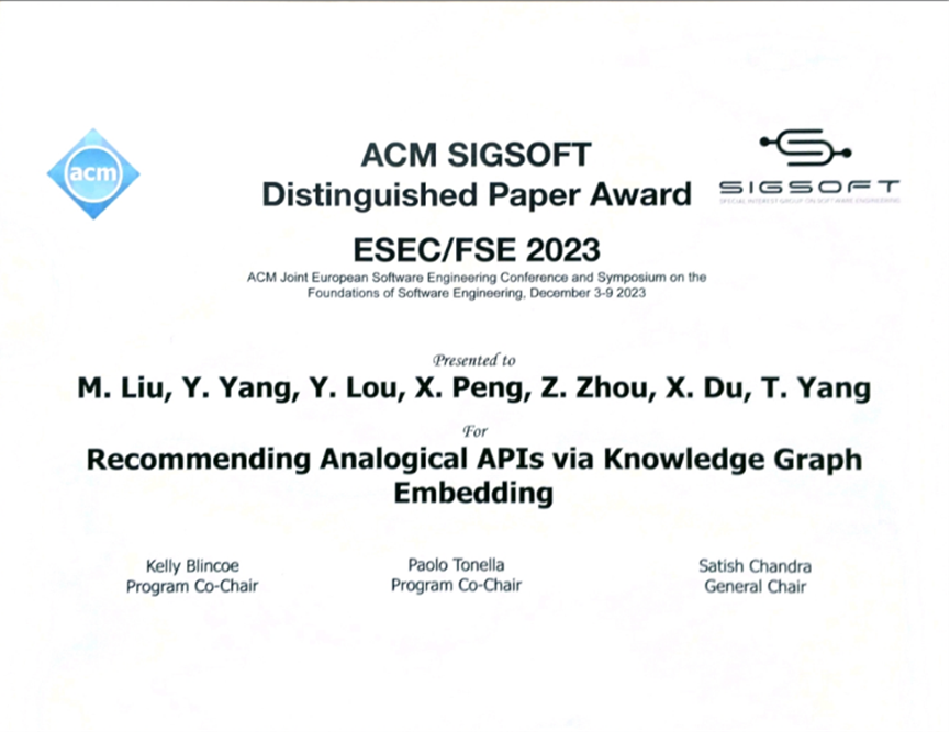 ACM SIGSOFT杰出论文奖(FSE 2023,CCF-A)