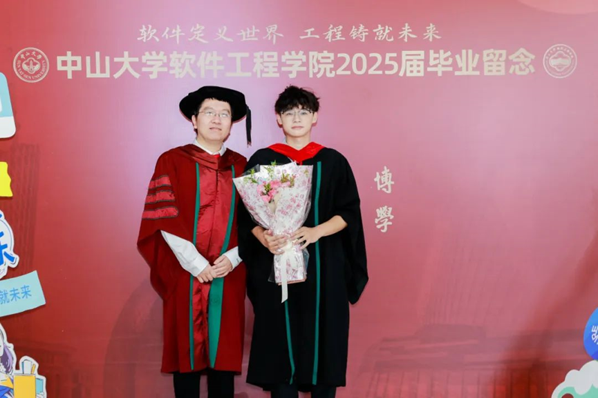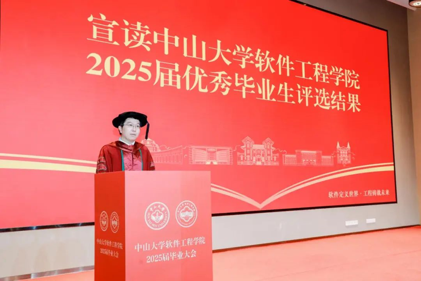 刘洋同学作为本科生毕业生代表发言。他认为“软件定义世界,工程铸就未来”不止是一句口号,也是软工学子在大学学习中逐渐内化的信念与追求。学院教会了大家沉稳地在专业领域内去应对未知,去积极探索,去勇于试错,在不确定性中稳步找寻到自己的航向。他代表本科生毕业生感谢学院的用心培养和老师们的悉心指导,希望各位同学未来能带着中大人的印记、软工人的精神,投身时代浪潮,用代码描绘蓝图,用知识贡献力量。