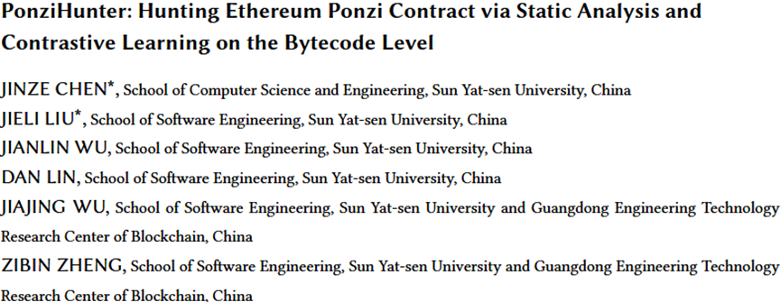 论文标题:PonziHunter: Hunting Ethereum Ponzi Contract via Static Analysis and Contrastive Learning on the Bytecode Level