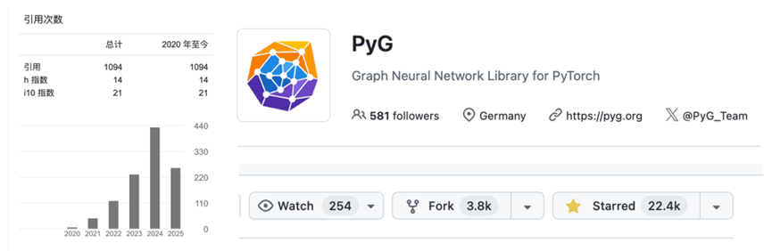广泛参与开源贡献。鼓励学生积极参与开源项目,在实践中锻炼技术应用能力和团队协作能力。2025年学院“软工菁英奖”获得者博士生李金膛研究成果被领域内多位国际学者引用,谷歌学术引用量达1100次,加入国际知名组织PyG,开源项目在GitHub上获得22000次收藏。