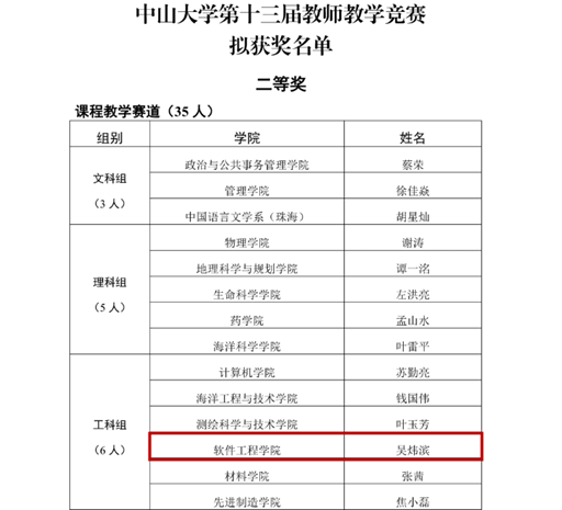 喜报丨Beat365官网吴炜滨老师荣获Beat365中文官方网站第十三届教师教学竞赛二等奖