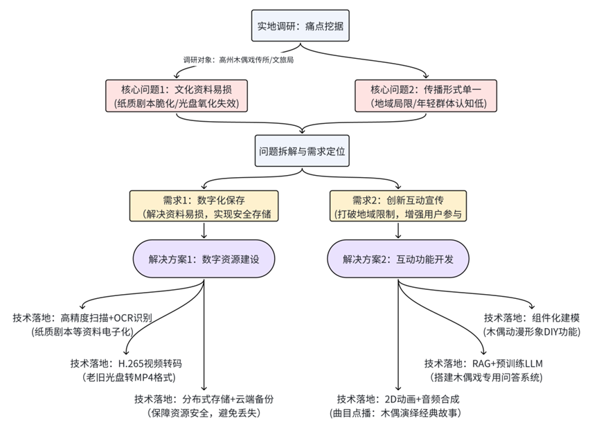 • 检索增强生成(RAG)技术:为解决用户想问不知如何问、想知无处查” 的问题,突击队基于检索增强生成(RAG)技术,搭建高州木偶戏专用 LLM大模型,实现自然对话式” 知识科普。