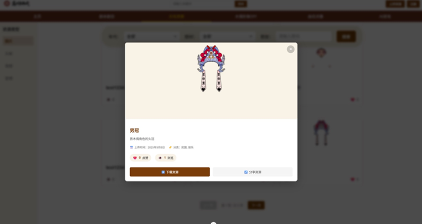 • 传承人上传端:传承人可上传未整理的手稿、新演出视频、木偶制作过程记录等资源,系统通过格式校验内容审核,确保新增资源的规范性。