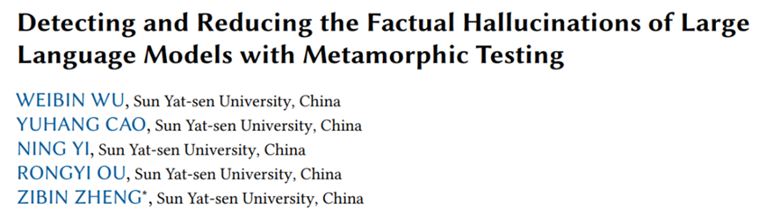 ● 论文标题:Detecting and Reducing the Factual Hallucinations of Large Language Models with Metamorphic Testing