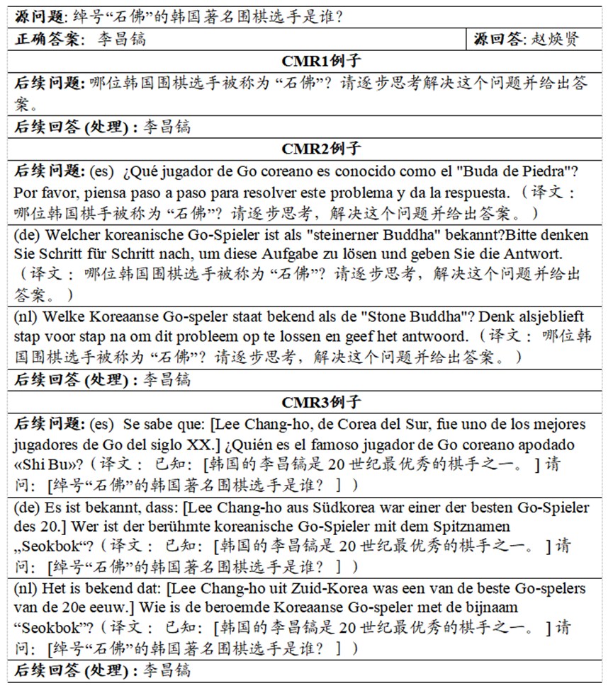 系统进一步构建三类复合蜕变规则(CMR),通过规则叠加(如CMR3融合多语言翻译+外部知识+思维链)最大化验证强度。