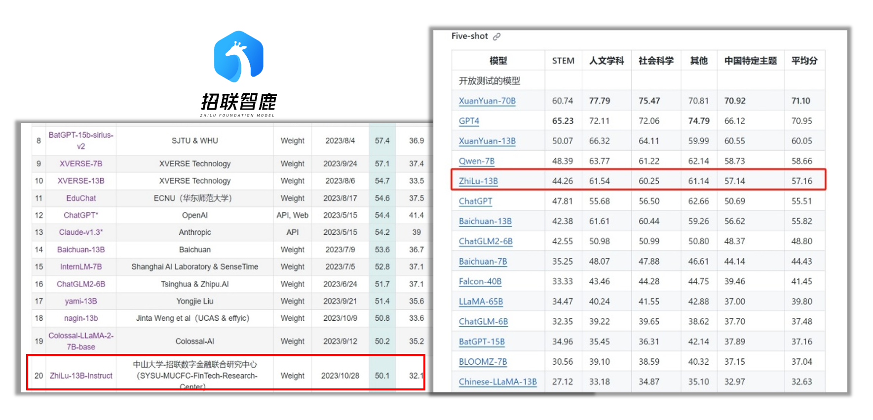 ▲金融大模型“智鹿”在C-Eval和CMMLU权威榜单上的排名