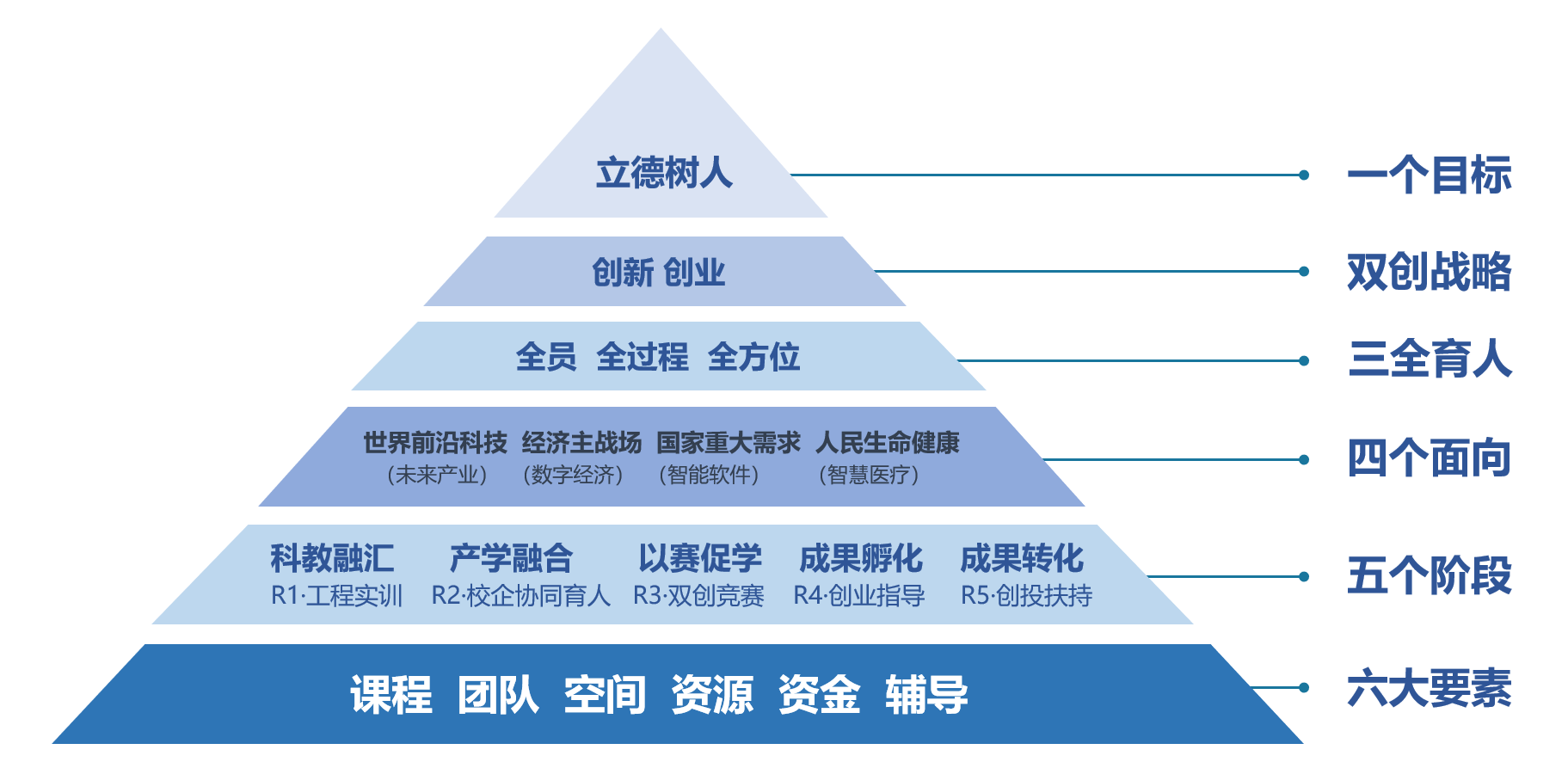 ▲Blue Hub科技创新创业教育金字塔体系